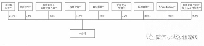 上市前,何小鹏持股21.75%,为小鹏汽车最大股东,小鹏汽车其他董事及高管持股为4.2%,淘宝持股11.9%;