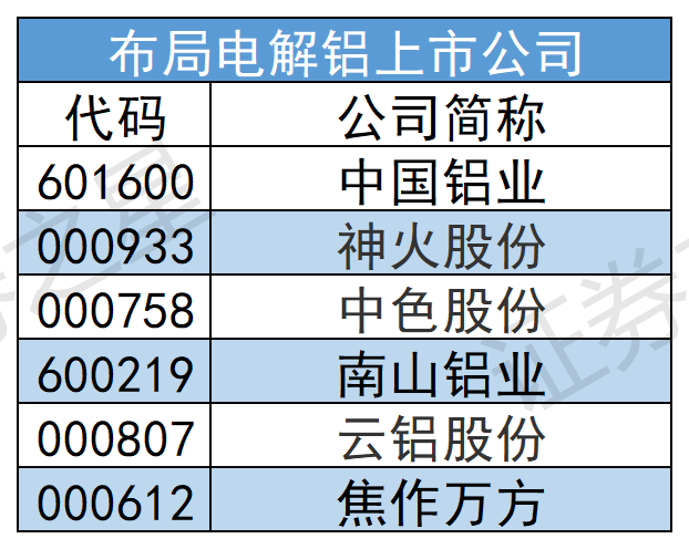 目前,已布局电解铝相关业务的上市公司主要如下: