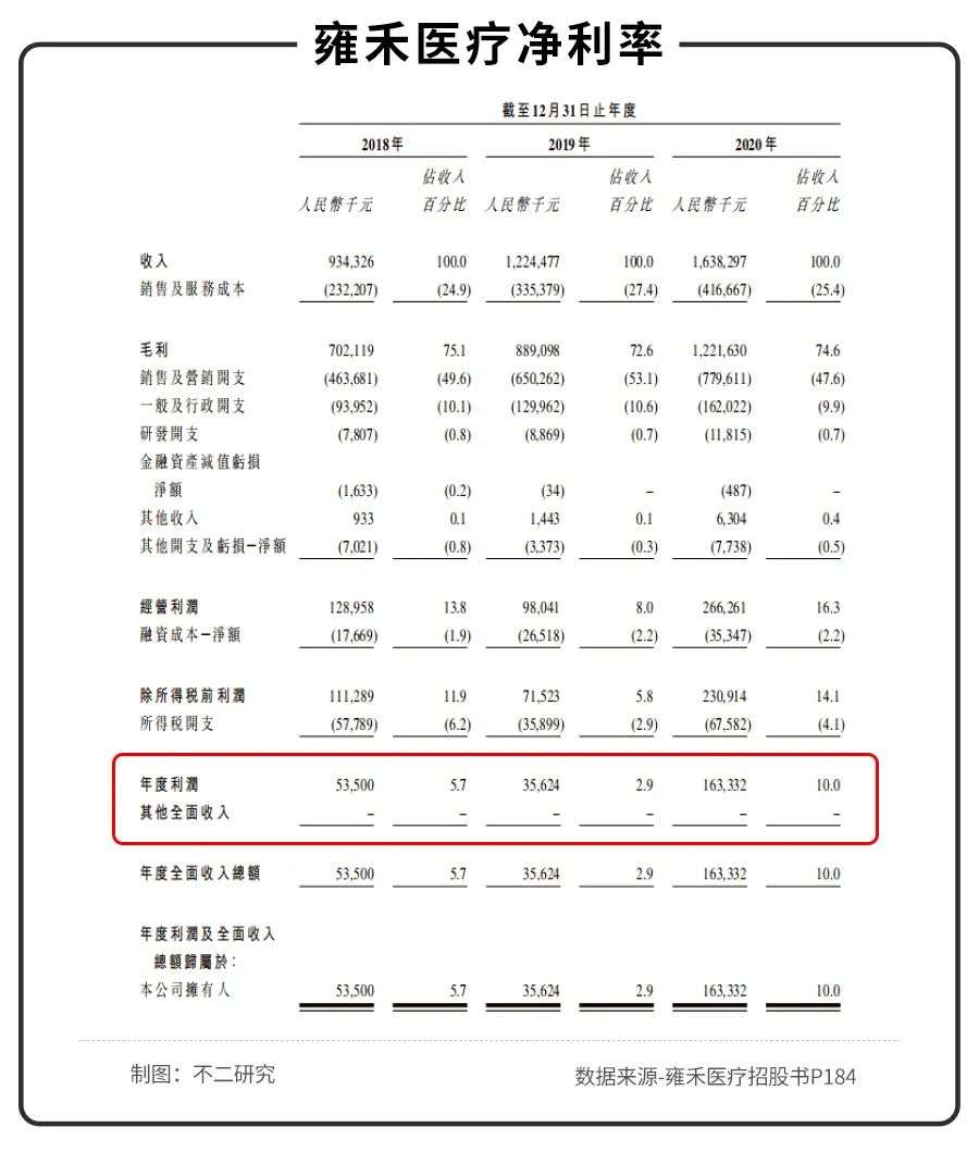 矛盾的是,在超70%的超高毛利率下,雍禾医疗的净利率却仅为10%。