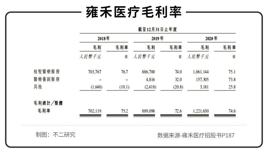 「不二研究」发现,作为植发行业的头部玩家,雍禾医疗毛利率高达75%;但矛盾的是,其净利率却仅为10%。