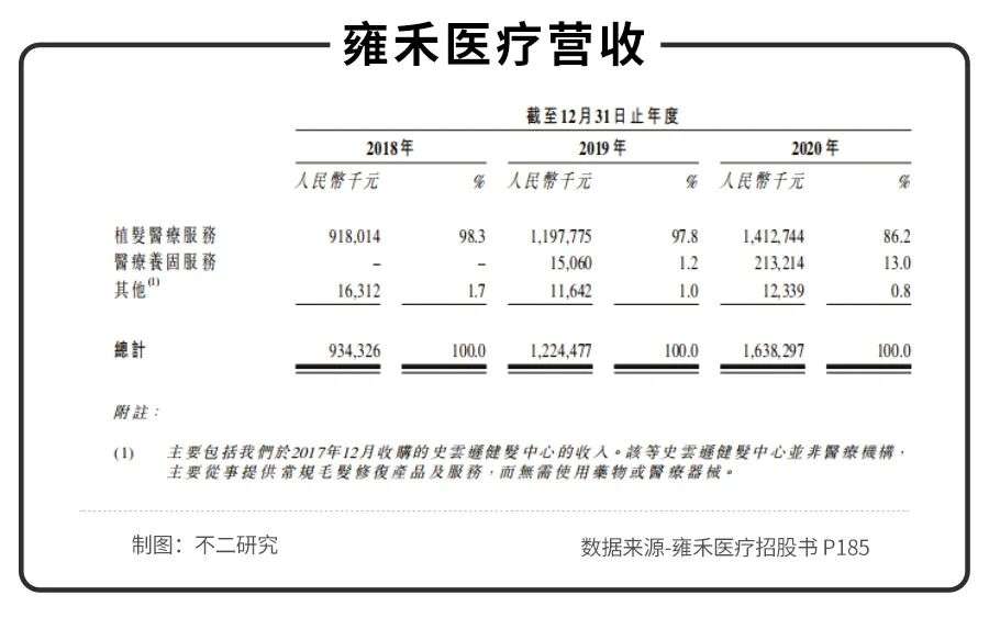 硬币的另一面,雍禾医疗于2019年引入的医疗养固服务;2019-2020年,其收入由0.15亿元增至2.13亿元,占营收比例由1.2%增至13%。