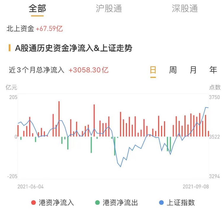 北上资金今日净流入67.59亿元,昨日净流入26.88亿元。
