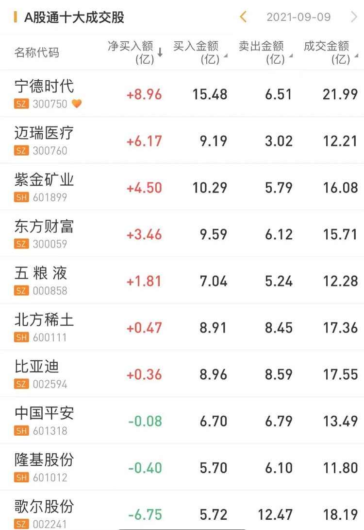 北上资金今日净买入宁德时代8.96亿元,为今日买入之最。