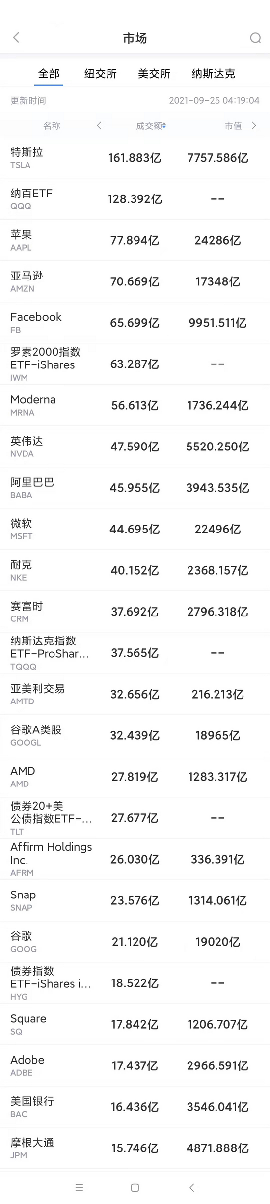以下为美股当日交易最活跃的20只股票(按成交额):