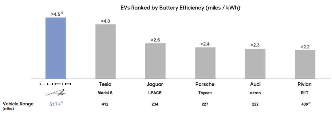 Lucid集团首席执行官兼首席技术官Peter Rawlinson表示:“Lucid开发的专利电动汽车技术将使使用更少的电池能源行驶更多里程成为可能。例如,我们Lucid Air Grand Touring的EPA官方评级为112千瓦时电池组的续航里程为516英里,使其每千瓦时的效率达到了行业领先的4.6英里。我们的技术将使电动汽车变得更轻、更高效、更便宜,这是我们在扩大更可持续交通工具的道路上迈出的重要一步。”