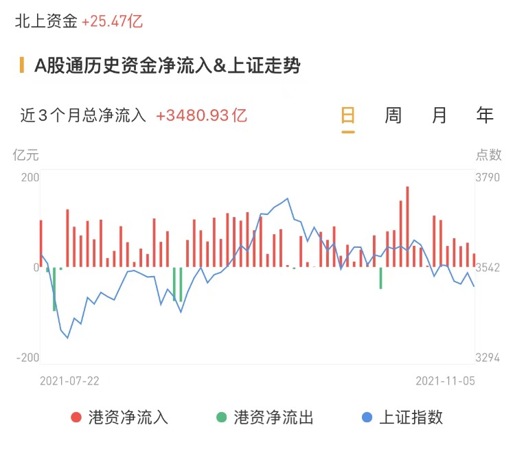 北上资金今日净流入25.47亿元,前一交易日净流入27.74亿元。
