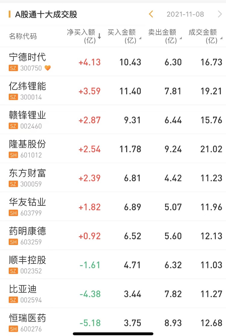 北上资金今日净买入宁德时代4.13亿元,为今日买入之最。