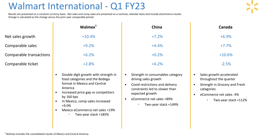 「沃尔玛国际」各市场业绩对比 图源:公司财报