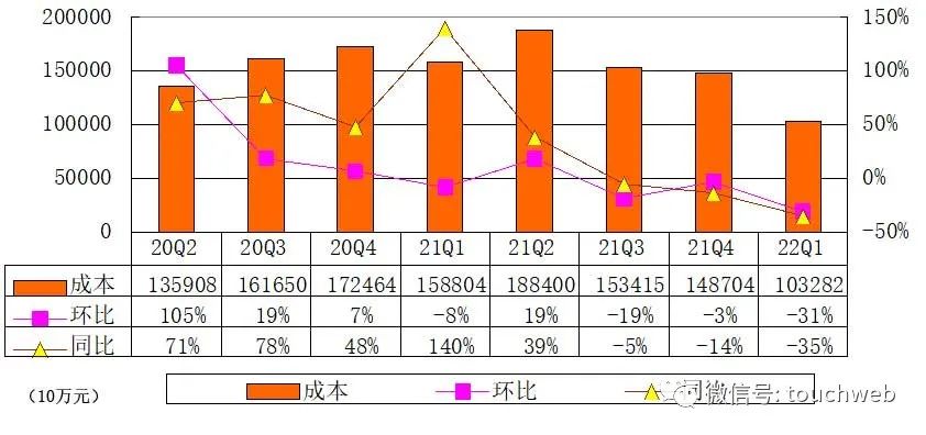 贝壳在2022年第一季度成本为103亿元,较上年同期的159亿元下降35%。