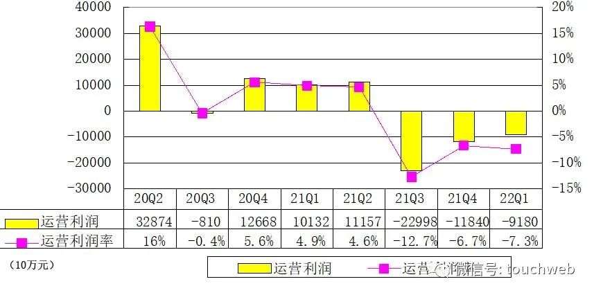 贝壳在2022年第一季度运营亏损为9.18亿元,运营利润率为-7.3%。贝壳在2022年第一季度经调整运营亏损为4.5亿元,经调整运营利润率为-3.6%。