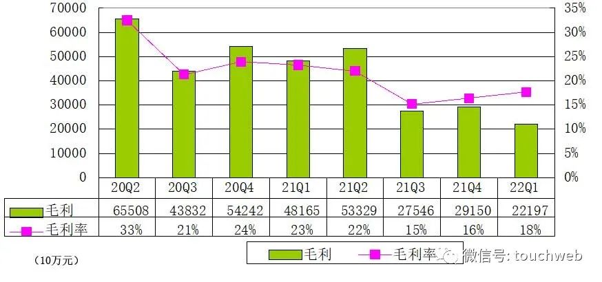 贝壳在2022年第一季度毛利为22亿元,上年同期的毛利为48亿元。贝壳在2022年第一季度毛利率为18%。