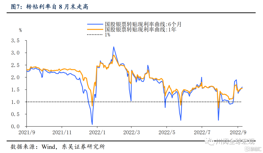 其次,9月转贴利率水平继续回升,中长期贷款需求有望继续回升。在信贷形势分析座谈会结束后,国股银票转贴现利率出现大幅回升,即便跨月时点已过,本周(9/5-9/9)的1年期转贴利率均值仍在1.5%以上,且呈现出上升态势。我们认为有两种促成这一现象的可能性存在,一是中长期贷款需求明显提升,二是政策对票贷比提出了一定要求促使银行加大了对中长期贷款的支持力度。无论是哪类因素,预计中长期贷款规模的企稳和信贷结构的改善都将是大概率事件。