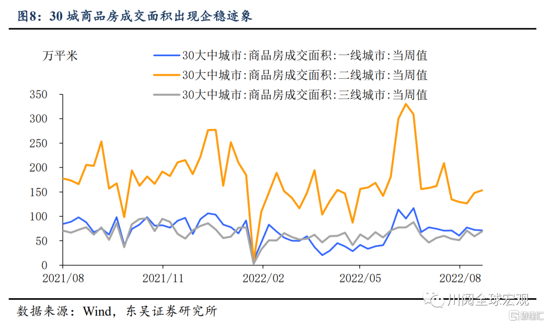 再次,非对称降息力度较大,8月商品房销售出现企稳迹象。今年以来5年期LPR已累计下调35bp,宽松力度已超2020年疫情时期。在8月5年期LPR再次下调15bp后,30城商品房成交面积出现企稳回升态势。根据19项一揽子政策中所提出的“持续释放贷款市场报价利率改革”和“允许地方‘一城一策’运用信贷等政策支持刚性和改善性住房需求”,我们预计未来5年期LPR还有下调可能,若能叠加限贷政策的调整,或将能刺激居民中长期贷款的企稳回升。