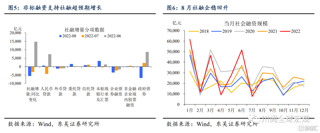 非标融资支持社融超预期回升。由于专项债的靠前发力,本月政府债券出现大规模同比少增,成为本月社融的最大拖累因素。但在政策性开发性金融工具补位和商业银行收票据力度减弱的情况下,本月委托贷款和未贴现银行承兑汇票支撑社融超预期回升。8月国开基础设施投资基金已签约合同金额达2100亿元,而农发基础设施基金也已完成900亿资金投放。这一因素或是拉动委托贷款同比多增1578亿元的主因。