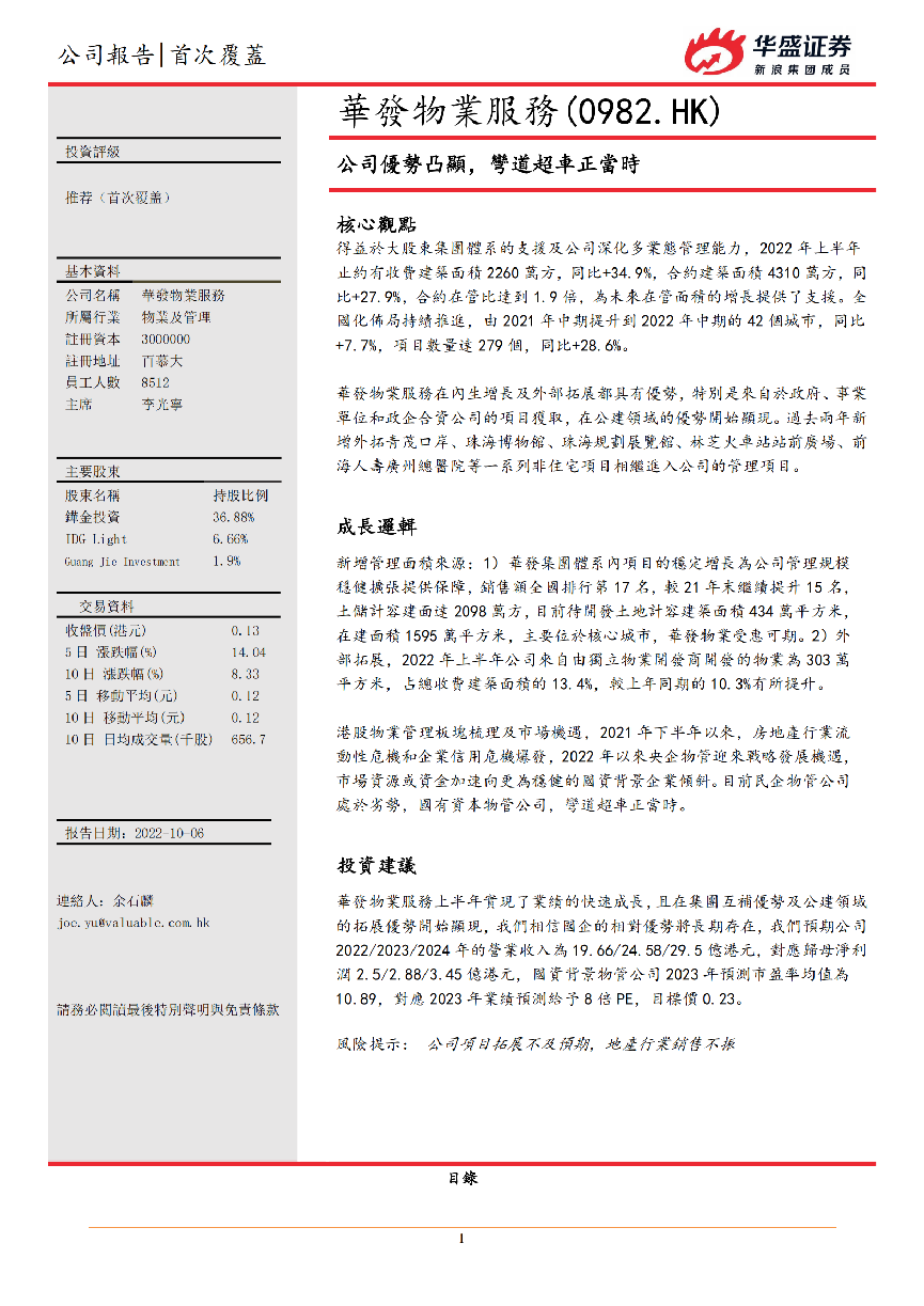 華發物業服務(0982.HK)公司優勢凸顯,彎道超車正當時