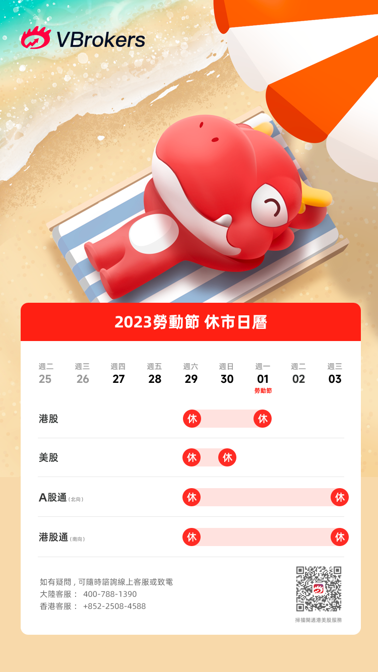 华盛资讯消息,五一劳动节假期大家劳逸结合,投资不放假,华盛资讯照常会提供服务。港美股市场的休市情况如下: