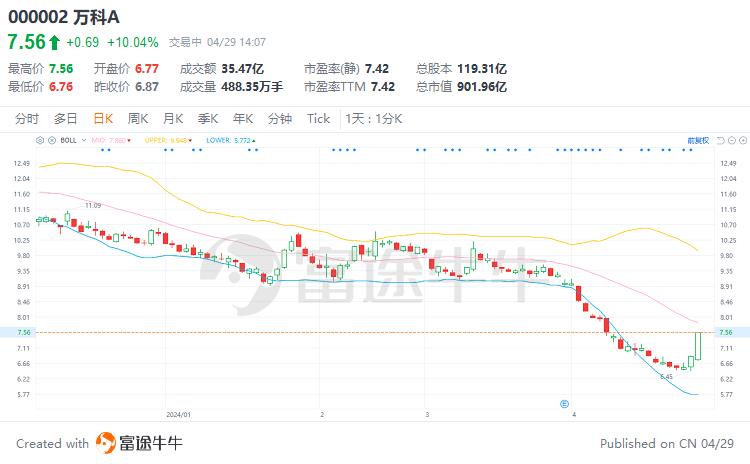 就连行业老大哥万科A 都涨停了,最新报7.56元/股,成交额33.67亿元,总市值902亿元。万科上一次涨停还要追溯到2022年11月11日。