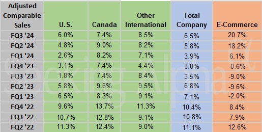 开业至少一年的同店销售额增长6.6%,超过市场预期的6%。这是自2023财年第二季度增长6.8%以来的最大增幅,也是连续第11个季度增长超出预期。