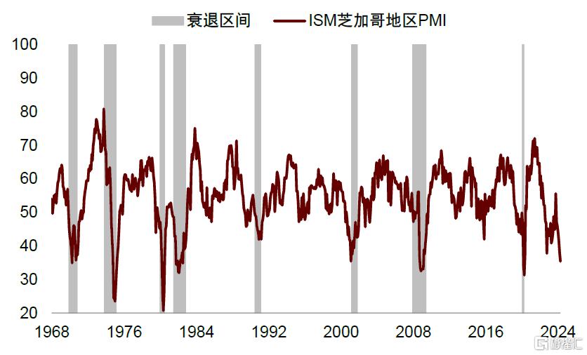 图表7:ISM芝加哥地区PMI已接近衰退时期水平
