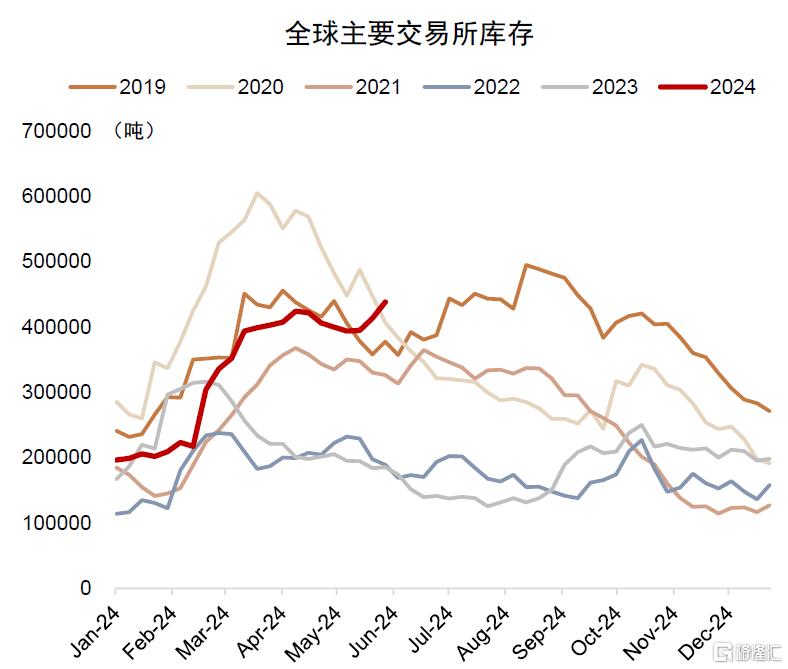 图表17:全球主要交易所铜库存水平相对往年并不低