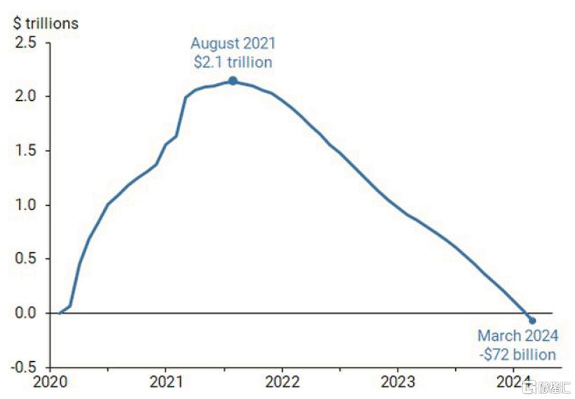 图表11:旧金山联储测算美国家庭超额储蓄在3月份已经耗尽
