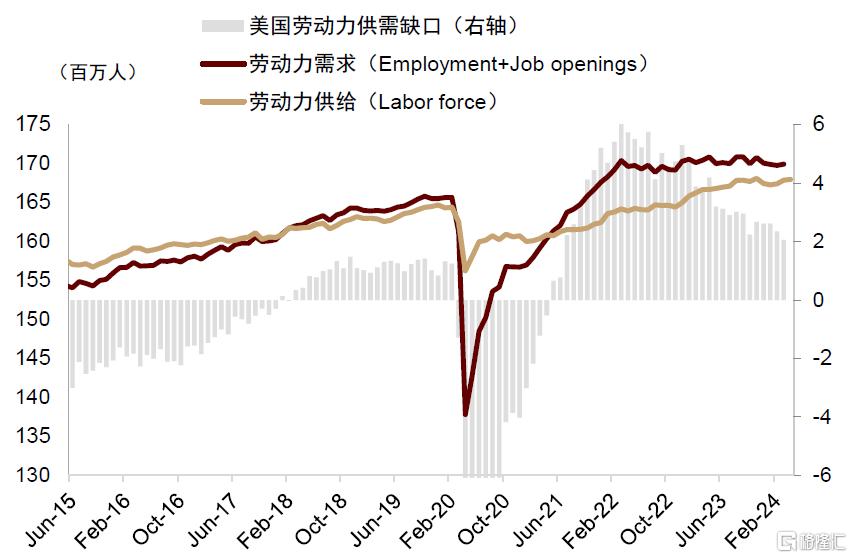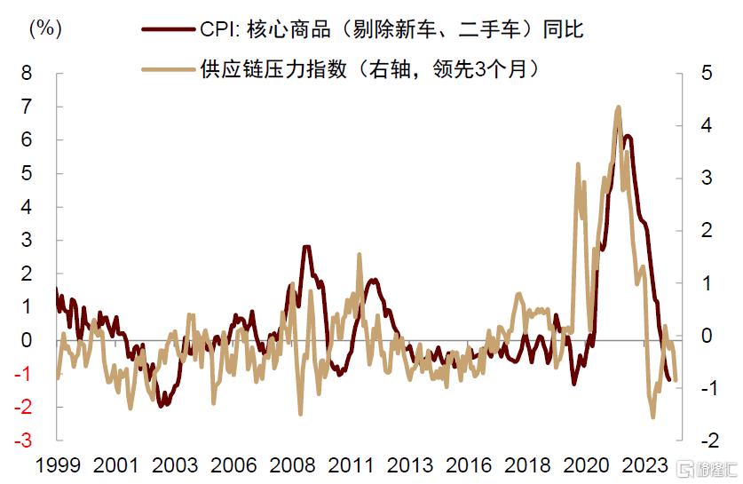 核心CPI环比小幅回落,反映市场房租通过统计滞后效应压低房租通胀(图表4),劳动力市场供给修复(图表5),以及核心商品供需走向均衡(图表6)。