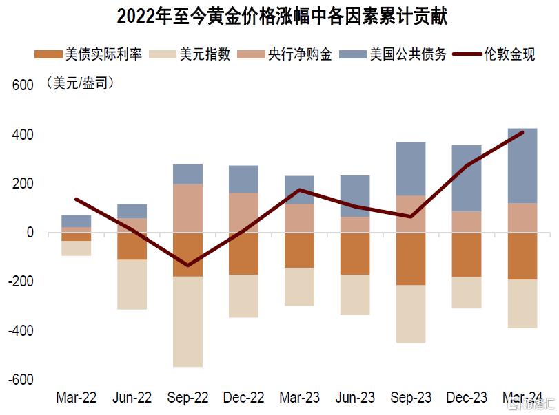 图表16:中金大类资产四因子模型对黄金价格涨幅贡献的拆分