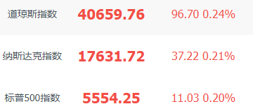 美股三大指数上周五走强,标普500指数涨0.2%,全周累计上涨3.93%;纳斯达克指数涨0.21%,全周累计上涨5.29%;道琼斯工业指数涨0.24%,全周累计上涨2.94%。根据统计,三大指数均创2023年10月底“美股大反转”后的最大单周涨幅。