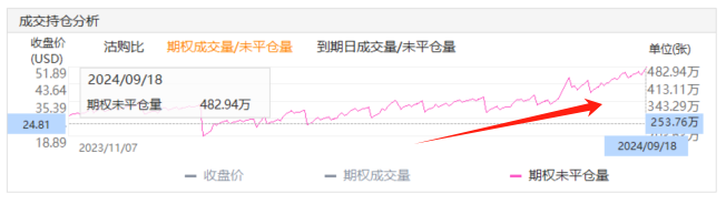 从英特尔期权交易数据来看,在8月初财报大跌后,期权未平仓量在400万~430万张徘徊,期权衍生品交易上似乎并未受到影响。期权链:英特尔 期权链