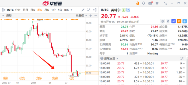 在刚刚过去的几天里,英特尔的股价不仅触底反弹,还连续两天录得大幅上涨。9月16日,其股价开盘时上涨超过7%,并在收盘时上涨6.36%,达20.91美元;紧接着,9月17日上午再次暴涨6.5%,突破22.30美元。这一系列喜报,显示了市场对英特尔未来潜力的乐观预期。