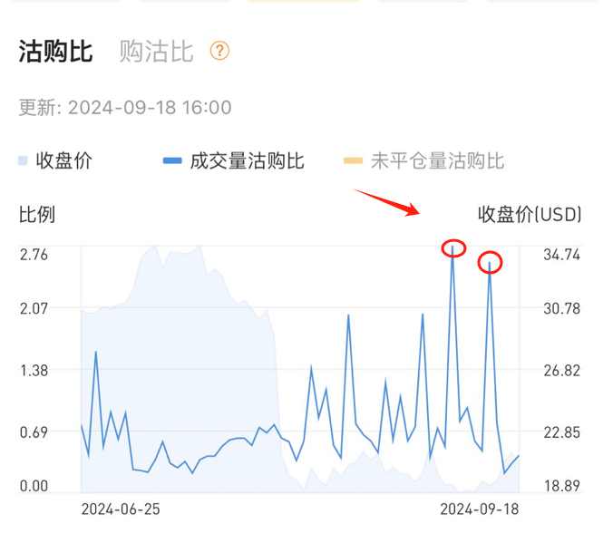 另外值得注意的是,在期权成交沽购比数据上来看,9月5日和9月13日达到2.76和2.58两个局部相对最大值,而同时股价也在局部低位,初步可以判断市场已经过度看空,处在超卖状态。