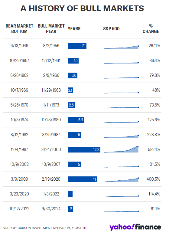 美股的本轮牛市始于2022年10月市场暴跌后的触底。到了2023年6月,美股正式确认“入牛”——当时该指数较2022年10月13日创下了的低点反弹了逾20%。