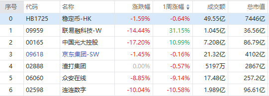 - 香港宣布稳定币落地!联易融科技-W周内飙涨31%