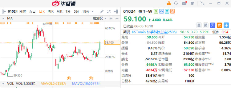 - 快手-W周内大涨近11%!可灵AI月度付费金额连续两个月突破1亿元人民币