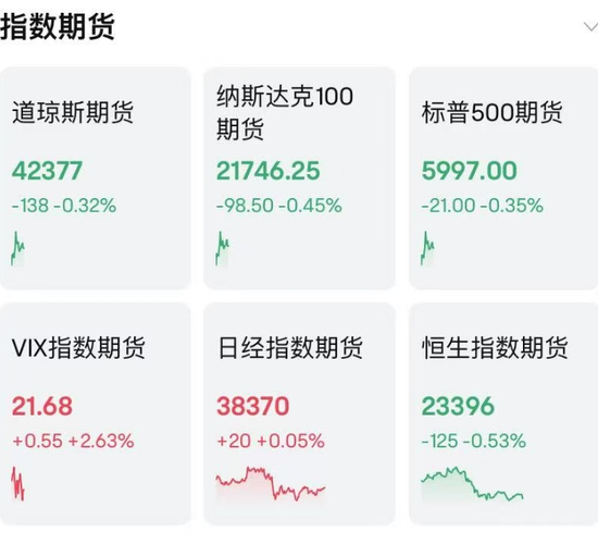 美股期货走低,纳斯达克100指数期货一度跌逾1%,目前跌幅有所收窄。