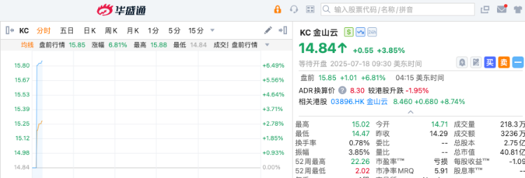 热门中概股盘前上涨,金山云涨超6%,中通快递涨超4%,新东方、哔哩哔哩涨超3%,理想汽车涨超1%,阿里、京东跟涨。