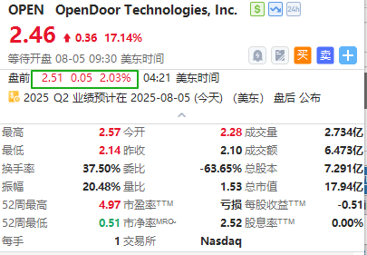 "MEME股"Opendoor盘前续涨超2%,公司预计8月5日盘后发布Q2业绩。美鹰服饰续涨近3%,该股隔夜大涨近24%;消息面上,特朗普带货广告点燃美鹰服饰股票涨势,分析师称出现MeMe股色彩。