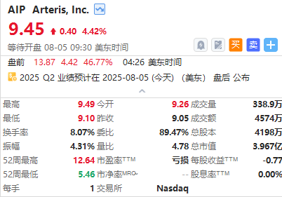 Arteris美股盘前大涨近50%,消息面上,公司将为AMD新一代AI芯粒设计提供FlexGen智能片上网络 (NoC) IP,8月5日盘后将发布最新季度财报。