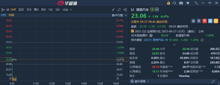 理想汽车跌超6%,消息面上,麦格里将理想汽车评级从“中性”下调至“跑输大市”,将理想汽车目标价从28美元下调至21美元。
