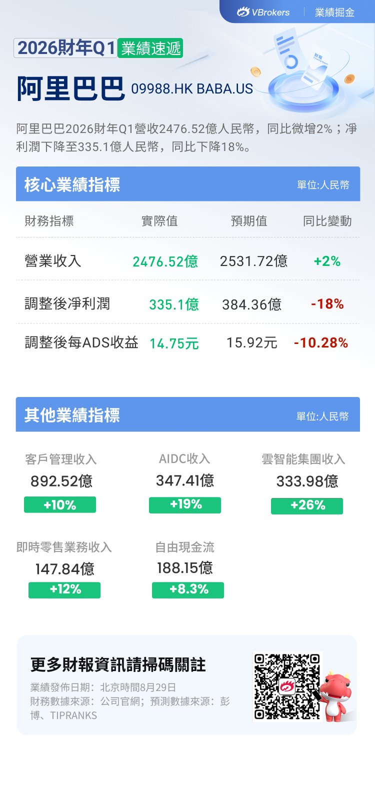 🎦🎦点击直播:阿里巴巴 (BABA.US/09988.HK) 2026财年第一季度业绩电话会