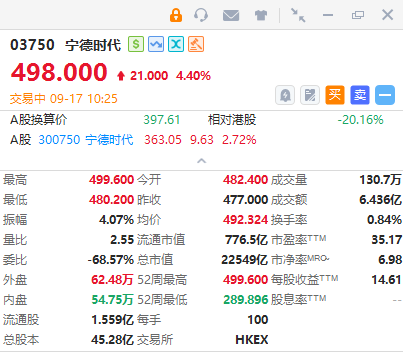 华盛资讯9月17日讯,宁德时代港股大涨超4%,股价再创历史新高。