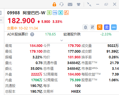 华盛资讯10月2日讯,阿里巴巴涨超3%,股价创2021年8月以来新高;阿里巴巴年内已累涨超125%。消息面上,摩根大通称云计算和电商业务的增长料支撑阿里巴巴更高估值,将阿里巴巴港股目标价由165港元大幅上调至240港元。