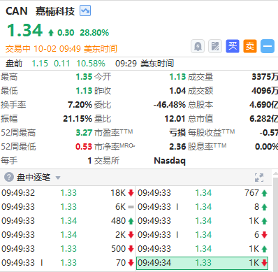 华盛资讯10月2日讯,美股加密货币概念股盘初集体冲高,嘉楠科技大涨超28%,斩获美国比特币矿商的重大订单; Bitmine Immersion Technologies $BMNR 涨超7%,Bullish $BLSH 、Circle、Coinbase涨超5%,Strategy涨超3%。