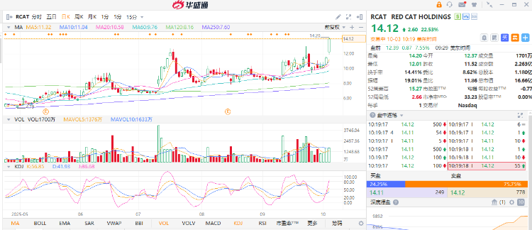 美股无人机概念股盘初集体冲高,Red Cat涨超20%,Unusual Machines涨超7%,Ondas Holdings、Archer Aviation涨超4%。