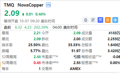 矿产勘探公司 $TMQ 飙涨超200%,此前美国政府宣布将收购Trilogy Metals公司10%的股份。
