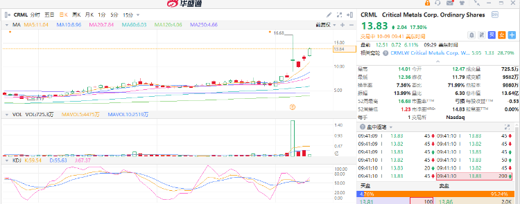 华盛资讯10月9日讯,美股稀土概念股大涨!Critical Metals $CRML 涨超17%,Energy Fuels $UUUU 涨超10%, $MP 涨超6%,USA Rare Earth $USAR 涨超5%。