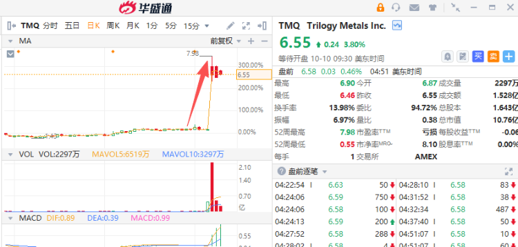 $TMQ | 10月7日 | 214.9% | 10% | 金属矿 |
