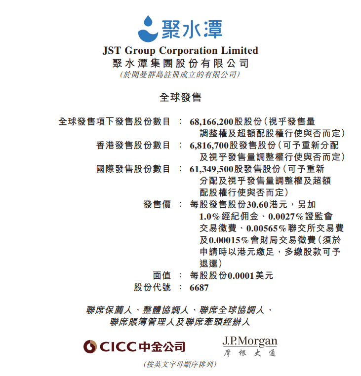 华盛资讯10月13日讯,聚水潭(06687)今日起招股,拟发行6816.62万股H股,每股招股价为30.60港元,每手100股,入场费3090.85港元,股份预期将于10月21日挂牌上市。