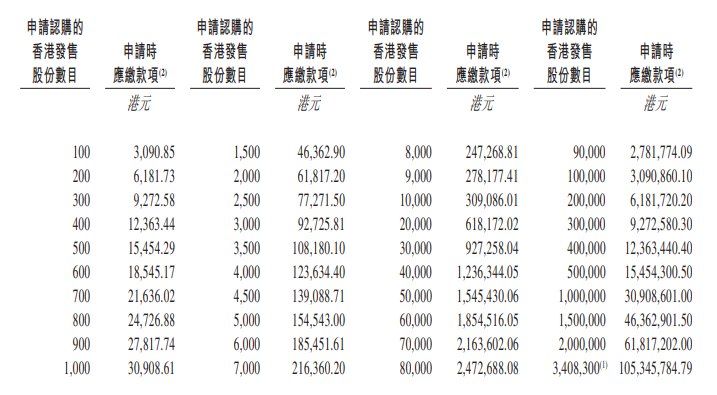 - 发售价格:每股招股价30.60港元,每手100股,一手入场费3090.85港元