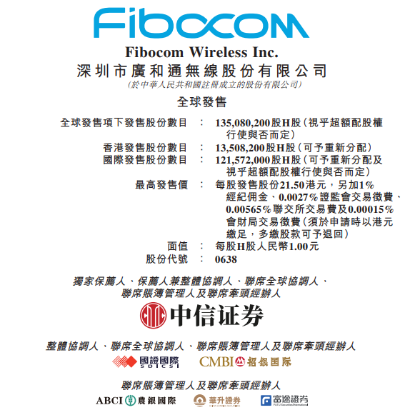 华盛资讯10月14日讯,广和通(00638)今起招股,拟发行1.35亿股H份,其中10%为香港公开发售,其余为国际配售,另有15%超额配股权。